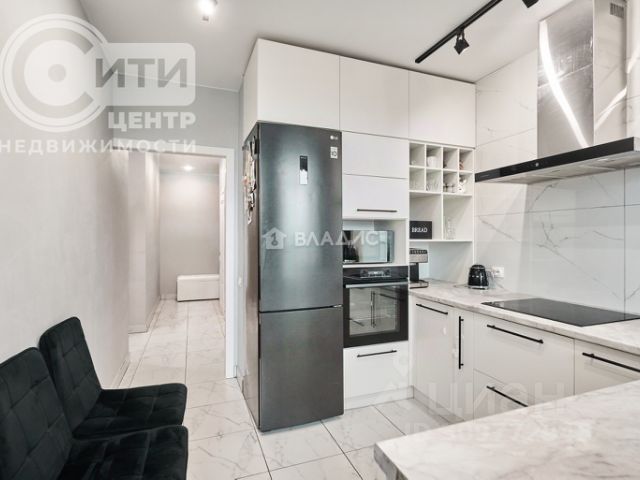 — Кухня-гостиная: встроенная кухня с большим количеством мест для хранения, вся встроенная техника: холодильник с морозильной камерой, духовой шкаф, индукционная варочная панель и вытяжка, - мягкий диван, обеденный стол и комплект стульев, современная стенка под телевизор, торшер, кондиционер;