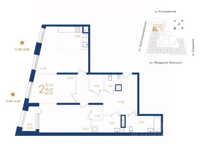 • ✓ В базе Циан 83 2-комнатных квартир 90 м2 в Воронеже