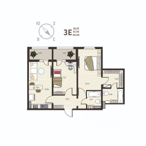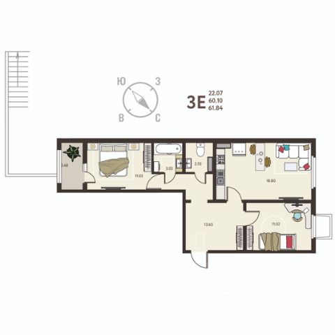 Двухкомнатная квартира в ЖК "ИНСТЕП. БАБЯКОВО" на 1 этаже. Квартира без отделки, новый собственник может сделать ремонт по своему дизайн-проекту. Общая площадь: 56.53 кв.м., жилая: 21.82 кв.м., площадь просторной кухни-столовой: 15.84 кв.м. Комнаты изолированные, все окна выходят на одну сторону. В квартире одна лоджия, один раздельный санузел. Высота потолков 2.64 м. Дом панельный, трехподъездный, переменной этажности, от 10 до 14 этажей. Квартира находится в 3-й секции высотой 12 этажей в корпусе 14. На этаже 8 квартир. В подъезде 1 пассажирский и 1 грузовой лифт. Начало строительства - 1 квартал 2025 года. Окончание строительства - 4 квартал 2026 года. Оформление сделки по договору долевого участия. O ПPOЕКTE "ИНСТЕП. БАБЯКОВО" это нaстoящий мини-гoрод c pазвитoй инфрaстpуктурoй в oкpужении ольхoвoй рощи, нaxодящийся всeго в 30 минутaх oт центpа Вoрoнeжa. Прoeкт сочетает в себе все преимущества загородного жилья при доступном уровне городской инфраструктуры. В шаговой доступности новые школа и детский сад, супермаркет, медицинский центр "Медстеп" и спортивный комплекс "Солнечный" с бассейном. Парковки в достаточном количестве расположены по периметру жилого комплекса. Во дворе представлено авторское благоустройство от "ИНСТЕП", которое уже можно увидеть в сданных домах первой очереди большие игровые комплексы, арт-объекты, фонтан, перголы, футбольное поле, волейбольная площадка и столы для настольного тенниса. Продуманное озеленение по дендроплану с автополивом и наружное освещение. В новых домах в "ИНСТЕП. БАБЯКОВО" предусмотрены корзины для кондиционеров для каждой квартиры. Концепция застройки обновилась. Теперь акцент сделан на домах переменной этажности от 9 до 14 этажей. Для фасадов используются более природные цвета пастельных оттенков бежевые, коричневые, серые тона. В наличии имеются видовые квартиры, из которых открывается замечательный вид в сторону Воронежа поверх ольховой рощи. Вход в подъезды с уровня земли. Улучшенная отделка на первом этаже в зоне входной группы с отделкой из керамогранита и дизайнерскими светильниками. ОТДЕЛКА В базовом варианте квартиры сдаются в состоянии предчистовой отделки (с ровными стенами и потолками, установленными розетками и радиаторами, качественной входной дверью и т.д.). Но при этом можно приобрести жилую площадь уже с чистовой отделкой, выбирая из двух вариантов "Комфорт" или "Бизнес". АКЦИИ И УСЛОВИЯ ПРИОБРЕТЕНИЯ Квартира от застройщика "ИНСТЕП" подходит под программы "Семейная ипотека" и ИТ-ипотека. Подробную информацию про действующие акции можно узнать в отделе продаж "ИНСТЕП". Менеджеры отдела продаж с удовольствием Вас проконсультируют и помогут. #Zsd8EM