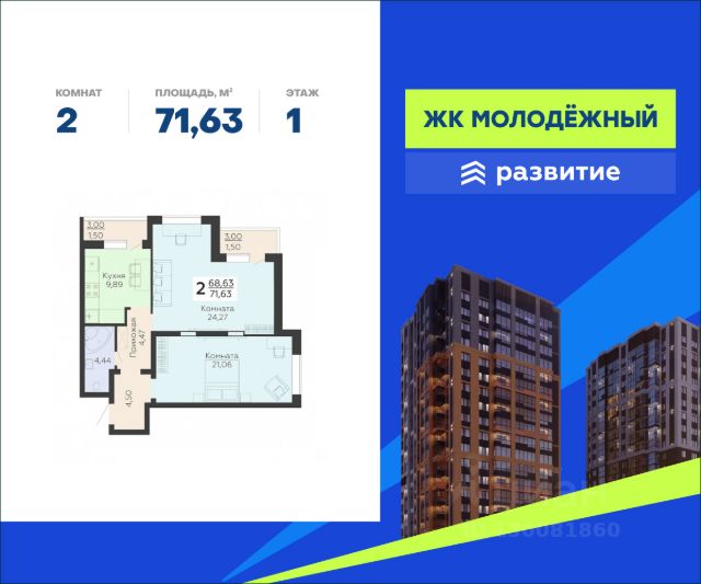 В продаже квартира площадью 55.10 кв. м с черновой отделкой. Квартира расположена на 3 этаже 19 этажного дома, в жилом комплексе "Молодежный" (застройщик - ГК "Развитие"). ЖК "Молодежный" - лучший жилой комплекс в юго-западной части Воронежа. Семейный квартал удачно расположен в окружении рек и озёр, и при этом имеет все условия для комфортного проживания. Хорошая транспортная доступность, эргономичные планировки, уютные дворы, продуманная архитектурная концепция и вся нужная инфраструктура. Расположение Пешком: - 8 мин. до ТЦ "Ермак"; - 9 мин. до автобусной остановки "Магазин"; - 15 мин. до пристани у реки Дон. На автомобиле: - 4 мин. до шоссе на Острогожской улице; - 5 мин. до Гремяченского моста; - 20 мин. до Ленинского района; - 25 мин. до центра города. Благоустройство - просторные входные группы; - современные лифты в каждом подъезде; - прогулочные бульвары и велодорожки; - лиственные и хвойные деревья во дворе; - большие игровые комплексы для детей; - малышам - качели, песочницы, горки; - фото-зона; - силовые и кардио-тренажеры; - турники для воркаута; - футбольная площадка; - просторный наземный паркинг; - кладовые помещения для габаритных вещей; - зона ритейла: пункты выдачи, продуктовые магазины, кафе, пекарни. Окружение - 6 лесопарковых зон: Малышевский, Долгий, Шиловский и Тавровский леса, лесной массив "Жировская дача", парк "Семейный"; - квартал в окружении воды: река Дон, Воронежское водохранилище, Шиловское озеро, Березовский затон; - 3 пляжа, зоопарк "Червленый Яр", смотровая площадка на холме с видом на Дон; - 2 школы, детский сад, поликлиника, торговые центры "Ермак" и "Магнит", досуговый клуб "Шилово" - все в шаговой доступности.