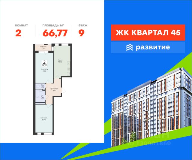 В продаже квартира площадью 53.48 кв. м с черновой отделкой. Квартира расположена на 13 этаже 18 этажного дома, в жилом комплексе комфорт-класса "Квартал 45". "Квартал 45" - это амбициозный проект будущего сердца Московского проспекта, в котором объединены лучшие градостроительные традиции, уникальная архитектура и современные технологии дизайна. Удачная локация рядом с центром, функциональные планировки, приватный парк в шаге от дома, собственный подземный паркинг на 187 машино-мест. Проект от федерального застройщика "Развитие" сочетает в себе все преимущества современного комфортного жилья. Расположение Пешком: - 3 мин. до остановки "Московский проспект"; - 5 мин. до Центрального автовокзала; - 15 мин. до уютного Коминтерновского сквера. На автомобиле: - 10 мин. до центра Воронежа; - 10 мин. до Ботанического сада; - 15 мин. до Петровской набережной. Благоустройство - приватный двор для жителей; - безопасность: нет машин, работают видеокамеры; - много зелени: деревья, кустарники, газоны; - тихие места для отдыха на свежем воздухе; - спортивный корт для командных игр; - силовые тренажеры и турники; - игровой городок для детей всех возрастов; - лужайки для пикников; - велосипедные и беговые дорожки; - длинный прогулочный бульвар; - просторный холл с авторским дизайном; - 2 лифта в каждом подъезде - грузовой и пассажирский; - удобные зоны хранения колясок и спортивного инвентаря; - кафе, продуктовые магазины, салоны красоты и другая инфраструктура на первом этаже дома. Окружение - 5 парков в пределах 10 минут: Центральный парк, Ботанический сад ВГУ, Лесопарковый участок НИИЛГиС, парк Победы, Северный лес; - спорткомплекс и стадион "Динамо", "Арена Север", Центральный стадион профсоюзов; - детская и взрослая областная больница, несколько частных клиник; - ТРЦ "Московский проспект", ТЦ "Москва", множество сетевых супермаркетов.