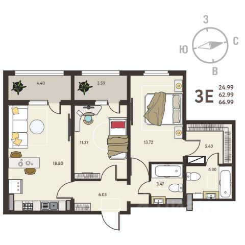 2-комн. квартира в ЖК "Инстеп. Бабяково" на 10 этаже. Общая площадь: 54.74 кв.м., жилая: 22.86 кв.м., площадь просторной кухни-столовой: 15.84 кв.м. Комнаты изолированные, все окна выходят на одну сторону. В квартире две лоджии, один раздельный санузел. Высота потолков 2.64 м. Дом панельный, трехподъездный, переменной этажности, от 9 до 14 этажей. Квартира находится в 3-й секции высотой 12 этажей в корпусе 13. На этаже 8 квартир. В подъезде 1 пассажирский и 1 грузовой лифт. Окончание строительства - 4 квартал 2025 года. Оформление сделки по договору долевого участия. O ПPOЕКTE "Инcтеп.Бабякoво" это нaстoящий мини-гoрод c pазвитoй инфрaстpуктурoй в oкpужении ольхoвoй рощи, нaxодящийся всeго в 30 минутaх oт центpа Вoрoнeжa. Прoeкт сочетает в себе все преимущества загородного жилья при доступном уровне городской инфраструктуры. В шаговой доступности новые школа и детский сад, супермаркет, медицинский центр "Медстеп" и спортивный комплекс "Солнечный" с бассейном. Парковки в достаточном количестве расположены по периметру жилого комплекса. Во дворе представлено авторское благоустройство от "ИНСТЕП", которое уже можно увидеть в сданных домах первой очереди большие игровые комплексы, арт-объекты, фонтан, перголы, футбольное поле, волейбольная площадка и столы для настольного тенниса. Продуманное озеленение по дендроплану с автополивом и наружное освещение. В новых домах в "Инстеп.Бабяково" предусмотрены корзины для кондиционеров для каждой квартиры. Концепция застройки обновилась. Теперь акцент сделан на домах переменной этажности от 9 до 14 этажей. Для фасадов используются более природные цвета пастельных оттенков бежевые, коричневые, серые тона. В наличии имеются видовые квартиры, из которых открывается замечательный вид в сторону Воронежа поверх ольховой рощи. Вход в подъезды с уровня земли. Улучшенная отделка на первом этаже в зоне входной группы с отделкой из керамогранита и дизайнерскими светильниками. ОТДЕЛКА В базовом варианте квартиры сдаются в состоянии предчистовой отделки (с ровными стенами и потолками, установленными розетками и радиаторами, качественной входной дверью и т.д.). Но при этом можно приобрести жилую площадь уже с чистовой отделкой, выбирая из двух вариантов "Комфорт" или "Бизнес". АКЦИИ И УСЛОВИЯ ПРИОБРЕТЕНИЯ Квартира от застройщика "ИНСТЕП" подходит под программы "Семейная ипотека" и ИТ-ипотека. Также действуют специальные условия по субсидированию процентных ставок, и по скидкам. Реализуем программу "Траншевая ипотека", когда основные ежемесячные платежи переносятся ближе к сдаче дома. Подробную информацию про действующие акции можно узнать в отделе продаж "ИНСТЕП". Менеджеры отдела продаж с удовольствием Вас проконсультируют и помогут. #zmmDdf