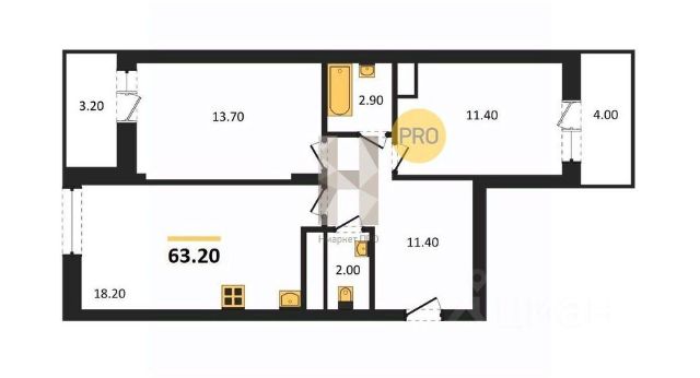 Квартира: 2 к 78,31 кв.м., 12 этаж в комплексе Z-town, 1 очередь, корп.1, сдача: 2кв. , этажей: 21, адрес Воронеж г., Чуева наб., д. 7, Застройщик: Новый код.