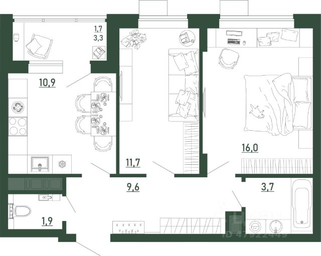 Квартира: 2 к 61,82 кв.м., 12 этаж в комплексе Z-town, 1 очередь, корп.1, сдача: 2кв. , этажей: 21, адрес Воронеж г., Чуева наб., д. 7, Застройщик: Новый код.