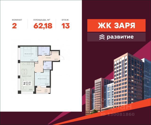 Продаётся 2-комнатная квартира в строящемся доме (Позиция 38), срок сдачи: III-кв. 2026, общей площадью 65.5 кв.м., на 13 этаже. Расположение, транспортная доступность