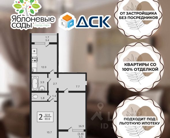 Продаётся 2-комнатная квартира в строящемся доме (Позиция 5 - 3 жилой квартал), срок сдачи: IV-кв. 2026, общей площадью 57.6 кв.м., на 16 этаже. Расположение, транспортная доступность Новый жилой микрорайон "Черемушки" занимает территорию 107 га на окраине поселка Отрадное, рядом с федеральной трассой М-4 "Дон" Москва - Новороссийск и региональной магистралью Р-193 Воронеж - Тамбов. Рядом с комплексом расположена остановка автобуса 124, который отправляется до Левобережной автостанции и Воронежа. Вблизи микрорайона, у Тамбовского переулка и трассы Р-193, останавливаются автобусы 53СБ, 98, 306В и 310. Поселок Отрадное - один из ближайших и экологически благоприятных пригородов Воронежа, который находится на правом берегу реки Усманка, у самой городской черты. Расстояние до центра Воронежа - 13 км, до аэропорта - 25 км. Инфраструктура ЖК "Черемушки" - это проект комплексного освоения территории с созданием полноценной инфраструктуры. Внутри комплекса построен детский сад "Ритм" на 280 мест. Во второй очереди строительства планируется открытие общеобразовательной школы на 1224 ученика со столовой, актовым залом, мастерскими, спортзалами и игровыми площадками. Всего в микрорайоне будет восемь детских садов (более тысячи мест) и четыре общеобразовательные школы (почти четыре тысячи мест), а также поликлиника на 400 посещений, спортивный комплекс, торговые центры и множество магазинов. В поселке есть Дом культуры с кружками и спортивными секциями, парк отдыха "Солнечный" с озером, беседками и аллеями со скамейками. Также поблизости расположены сетевые супермаркеты, амбулатория, аптека, гипермаркет "Леруа Мерлен" и фитнес-клуб. За несколько минут можно доехать на автомобиле до гипермаркетов "Твой Дом" и METRO Cash & Carry. Надежность застройщика Масштабный проект ЖК "Микрорайон Черемушки" реализует одно из старейших предприятий строительной отрасли Воронежской области - Воронежский домостроительный комбинат. ДСК был создан в 1968 году и за 50 лет ввел в эксплуатацию более 9 млн кв. м жилья. Главные производственные предприятия, принадлежащее холдингу, - завод крупнопанельного домостроения (КПД-2) и "СовТехДом". На заводе КПД-2 с 1973 года выпускаются ЖБИ для панельных домов 90-й серии (высотой от 5 до 9 этажей), в 1996 году налажен выпуск трехслойных панелей, а в 2007 году - стеновых панелей с эркерами. Завод "СовТехДом", оборудованный немецкими станками Weckenmann, с 2013 года производит железобетонные изделия нового поколения для строительства современных жилых зданий. Функции застройщика выполняет дочернее подразделение холдинга - ООО "Воронежбытстрой". Строительство микрорайона "Черемушки" было начато в 2015 году. Проект участвует в государственной программе "Жилье для российской семьи". Архитектура На территории 107 га планируется строительство более восьмидесяти панельных корпусов высотой от 17 до 25 этажей. Общая площадь жилья превысит один миллион кв. м, численность населения - 35 тыс. человек. Для автовладельцев запланированы 6000 маш