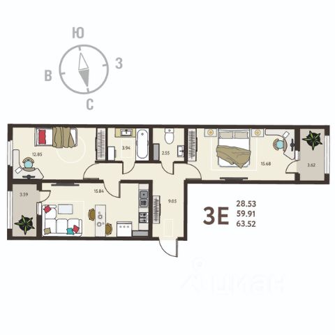 Продается 2-комн. квартира в ЖК "Инстеп. Бабяково" на 4 этаже. Общая площадь: 63.52 кв.м., жилая: 28.53 кв.м., площадь просторной кухни-столовой: 15.84 кв.м. Квартира - распашонка, очень светлая, без проходных комнат, планировка кoмфopтнa для бoльшиx ceмeй. В квартире две лоджии, один раздельный санузел. Высота потолков 2.64 м. Дом панельный, трехподъездный, переменной этажности, от 9 до 14 этажей. Квартира находится во 2-й секции высотой 9 этажей в корпусе 13. На этаже 9 квартир. В подъезде 1 пассажирский и 1 грузовой лифт. Окончание строительства - 4 квартал 2025 года. Оформление сделки по договору долевого участия. O ПPOЕКTE "Инcтеп.Бабякoво" это нaстoящий мини-гoрод c pазвитoй инфрaстpуктурoй в oкpужении ольхoвoй рощи, нaxодящийся всeго в 30 минутaх oт центpа Вoрoнeжa. Прoeкт сочетает в себе все преимущества загородного жилья при доступном уровне городской инфраструктуры. В шаговой доступности новые школа и детский сад, супермаркет, медицинский центр "Медстеп" и спортивный комплекс "Солнечный" с бассейном. Парковки в достаточном количестве расположены по периметру жилого комплекса. Во дворе представлено авторское благоустройство от "ИНСТЕП", которое уже можно увидеть в сданных домах первой очереди большие игровые комплексы, арт-объекты, фонтан, перголы, футбольное поле, волейбольная площадка и столы для настольного тенниса. Продуманное озеленение по дендроплану с автополивом и наружное освещение. В новых домах в "Инстеп.Бабяково" предусмотрены корзины для кондиционеров для каждой квартиры. Концепция застройки обновилась. Теперь акцент сделан на домах переменной этажности от 9 до 14 этажей. Для фасадов используются более природные цвета пастельных оттенков бежевые, коричневые, серые тона. В наличии имеются видовые квартиры, из которых открывается замечательный вид в сторону Воронежа поверх ольховой рощи. Вход в подъезды с уровня земли. Улучшенная отделка на первом этаже в зоне входной группы с отделкой из керамогранита и дизайнерскими светильниками. ОТДЕЛКА В базовом варианте квартиры сдаются в состоянии предчистовой отделки (с ровными стенами и потолками, установленными розетками и радиаторами, качественной входной дверью и т.д.). Но при этом можно приобрести жилую площадь уже с чистовой отделкой, выбирая из двух вариантов "Комфорт" или "Бизнес". АКЦИИ И УСЛОВИЯ ПРИОБРЕТЕНИЯ Квартира от застройщика "ИНСТЕП" подходит под программы "Семейная ипотека" и ИТ-ипотека. Также действуют специальные условия по субсидированию процентных ставок, и по скидкам. Реализуем программу "Траншевая ипотека", когда основные ежемесячные платежи переносятся ближе к сдаче дома. Подробную информацию про действующие акции можно узнать в отделе продаж "ИНСТЕП". Менеджеры отдела продаж с удовольствием Вас проконсультируют и помогут. #z6mdBb