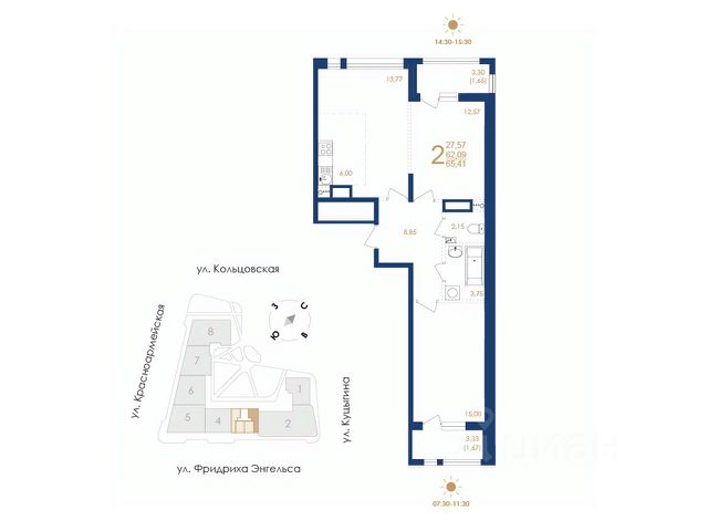 "Дом на Фридриха Энгельса" престижная локация с исключительной инфраструктурой. Особая атмосфера исторического центра. В жилом доме предусмотрено 8 секций, 309 эксклюзивных квартир по технологии монолитного домостроения - Переменная этажность: 6 17 - Площадь квартир: от 29,89 до 127,29 кв. м - Площадь террас: от 2,24 до 99,34 кв. м - Высота потолков в квартирах: 3,1 м - Свободные планировки, евроформат - Эксклюзивные решения (мастер-спальня с собственным выходом на террасу, ванная комната с видом на город) - Авторская архитектура - Концептуальное благоустройство, архитектурная подсветка - Премиальное лобби - Дизайнерские бесшумные лифты Meteor - Закрытая охраняемая территория - Высокий уровень безопасности, сервиса и приватности - Подземный 2-х уровневый паркинг (270 машино-мест) - Электрические зарядки для автомобилей - Кладовые - Ритейл на 1 этажах Трейд-ин. Действующие ипотечные ставки и акции уточняйте в офисе продаж застройщика. Услуга собственного менеджера по ипотечному кредитованию - удобная опция для клиентов компании. Специалисты обеспечат вам комфортные условия получения кредита и будут рядом на каждом этапе, возьмут на себя все взаимодействие с банком. Квартира от застройщика! Строительная компания "ВЫБОР" предлагает купить двухкомнатную квартиру в "Дом на Фридриха Энгельса" в Воронеже. Успей приобрести квартиру по выгодной цене! Строительная компания "ВЫБОР" — один из ведущих застройщиков в Центрально-Черноземном регионе. Квартиры в новостройках от застройщика.