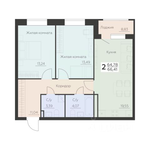Продаётся 2-комнатная квартира в строящемся доме (1 этап), срок сдачи: IV-кв. 2029, общей площадью 66.19 кв.м., на 4 этаже. Новый жилой комплекс от группы компаний "Развитие" расположен по адресу: г. Воронеж, по ул. Туполева.