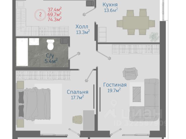 Продаётся 2-комнатная квартира в строящемся доме (Позиция 1 - 3 жилой квартал), срок сдачи: IV-кв. 2025, общей площадью 60.4 кв.м., на 5 этаже. Расположение, транспортная доступность Новый жилой микрорайон "Черемушки" занимает территорию 107 га на окраине поселка Отрадное, рядом с федеральной трассой М-4 "Дон" Москва - Новороссийск и региональной магистралью Р-193 Воронеж - Тамбов. Рядом с комплексом расположена остановка автобуса 124, который отправляется до Левобережной автостанции и Воронежа. Вблизи микрорайона, у Тамбовского переулка и трассы Р-193, останавливаются автобусы 53СБ, 98, 306В и 310. Поселок Отрадное - один из ближайших и экологически благоприятных пригородов Воронежа, который находится на правом берегу реки Усманка, у самой городской черты. Расстояние до центра Воронежа - 13 км, до аэропорта - 25 км. Инфраструктура ЖК "Черемушки" - это проект комплексного освоения территории с созданием полноценной инфраструктуры. Внутри комплекса построен детский сад "Ритм" на 280 мест. Во второй очереди строительства планируется открытие общеобразовательной школы на 1224 ученика со столовой, актовым залом, мастерскими, спортзалами и игровыми площадками. Всего в микрорайоне будет восемь детских садов (более тысячи мест) и четыре общеобразовательные школы (почти четыре тысячи мест), а также поликлиника на 400 посещений, спортивный комплекс, торговые центры и множество магазинов. В поселке есть Дом культуры с кружками и спортивными секциями, парк отдыха "Солнечный" с озером, беседками и аллеями со скамейками. Также поблизости расположены сетевые супермаркеты, амбулатория, аптека, гипермаркет "Леруа Мерлен" и фитнес-клуб. За несколько минут можно доехать на автомобиле до гипермаркетов "Твой Дом" и METRO Cash & Carry. Надежность застройщика Масштабный проект ЖК "Микрорайон Черемушки" реализует одно из старейших предприятий строительной отрасли Воронежской области - Воронежский домостроительный комбинат. ДСК был создан в 1968 году и за 50 лет ввел в эксплуатацию более 9 млн кв. м жилья. Главные производственные предприятия, принадлежащее холдингу, - завод крупнопанельного домостроения (КПД-2) и "СовТехДом". На заводе КПД-2 с 1973 года выпускаются ЖБИ для панельных домов 90-й серии (высотой от 5 до 9 этажей), в 1996 году налажен выпуск трехслойных панелей, а в 2007 году - стеновых панелей с эркерами. Завод "СовТехДом", оборудованный немецкими станками Weckenmann, с 2013 года производит железобетонные изделия нового поколения для строительства современных жилых зданий. Функции застройщика выполняет дочернее подразделение холдинга - ООО "Воронежбытстрой". Строительство микрорайона "Черемушки" было начато в 2015 году. Проект участвует в государственной программе "Жилье для российской семьи". Архитектура На территории 107 га планируется строительство более восьмидесяти панельных корпусов высотой от 17 до 25 этажей. Общая площадь жилья превысит один миллион кв. м, численность населения - 35 тыс. человек. Для автовладельцев запланированы 6000 маши