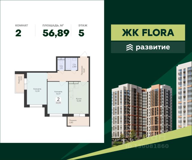 В продаже квартира площадью 56.89 кв. м с черновой отделкой. Квартира расположена на 5 этаже 15 этажного дома, в жилом комплексе комфорт-класса FLORA ("Флора"). ЖК FLORA - лучшие условия для жизни в одном из самых привлекательных и зелёных районов города. Проект от ГК "Развитие" состоит из семи секций переменной этажности и также включает в себя мультифункциональные площадки для всех видов отдыха, собственное ритейл-пространство, 270 парковочных мест для автомобилей, множество продуманных планировок. Жизнь в идеальном балансе между природой и современным городом - жизнь в ЖК FLORA! Расположение Пешком: - 8 мин. до остановки "Институт генетики"; - 10 мин. до Дендрария; - 12 мин. до школы "Содружество" на 2860 учеников. На автомобиле: - 5 мин. до Московского проспекта; - 8 мин. до ВГАУ им. Петра I; - 15 мин. до пляжа у реки Воронеж; - 20 мин. до центра города. Благоустройство - двор, разделенный на функциональные пространства; - игровые комплексы для детей; - безопасное покрытие, защищающее от травм; - зона-воркаут; - тренажеры для силовых и кардио-тренировок; - велодорожки; - протяженная прогулочная аллея; - скамьи и беседки для отдыха; - ландшафтное озеленение; - освещение двора в вечерние часы; - просторный холл с уютным интерьером; - колясочные и кладовые; - лапомойки для собак; - система охраны и видеонаблюдения; - супермаркеты, пункты выдачи, кафе и пекарни прямо в доме. Окружение - центральные ВУЗы, большая школа, десятки детских садов и учреждений доп. образования; - памятник природы "Старовозрастные Дубравы", лесопарк НИИЛГиС, Ботанический сад ВГУ, Северный лес, парк имени К. Д. Глинки; - ТЦ "Московский проспект", стадион "Динамо", гипермаркеты "Лента", "Магнит"; - пляж у Воронежского водохранилища, Археологический музей, кинотеатр Star&Mlad, культурно-досуговый центр "Северный".