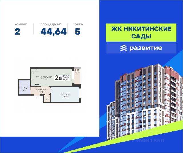 • ✓ В базе Циан 2 2-комнатных квартир на 5 этаже в микрорайоне Подгорное в городе Воронеж