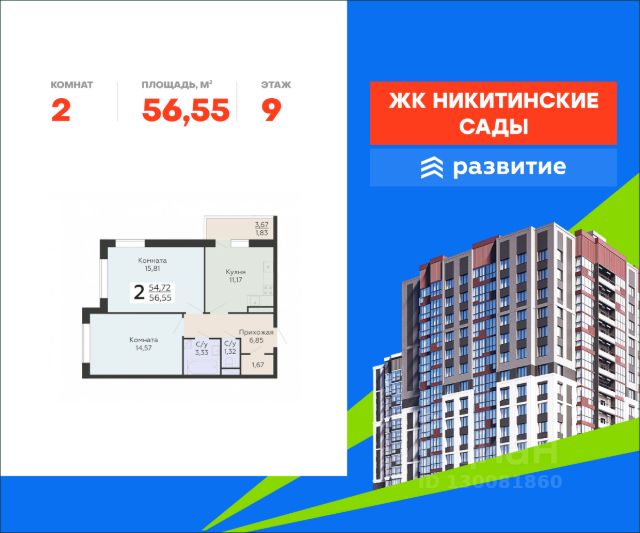 В продаже квартира площадью 53.09 кв. м с черновой отделкой. Квартира расположена на 9 этаже 20 этажного дома, в жилом комплексе комфорт-класса "Никитинские сады". "Никитинские сады" - это новое пространство, которое объединяет в себе современный внешний вид и атмосферу природного уюта. Жилой комплекс включает в себя 4 20-этажных корпуса, 1090 квартир различных планировок, множество общественных пространств для отдыха и собственную инфраструктуру. Наслаждайтесь всеми преимуществами города в окружении живописной природы! Расположение - 10 мин. пешком до остановки "улица Маршала Голикова"; - 5 мин. до бульвара Победы; - 9 мин. до ТРЦ "Арена"; - 20 мин. до ж/д станции "Березовая роща"; - 25 мин. до центра города; Благоустройство - несколько садов во дворе; - озеленение территории; - развивающие комплексы для малышей; - зоны для фотосессий; - скамьи по всему периметру; - прогулочные дорожки; - уличные тренажеры; - турники для воркаута; - мягкое покрытие на активных площадках; - оборудование из натуральных материалов; - освещение территории в вечерние часы; - просторный наземный паркинг; - кафе, магазины и бытовые сервисы на первых этажах. Окружение - природный отдых: Северный лес и лесопарк, пляж у реки Дон, озера Северск, Бычок, Круглое; - активный отдых: спорткомплекс "Арена Север", "Олимпик", футбольная школа и стадион, бассейн "Атлант", теннисный клуб "Спарта"; - культурный отдых: Музей почтового дела, КДЦ "Северный", храм Ксении Петербургской; - городской отдых: ТРЦ Сити-парк "Град" и "Московский проспект", ТРЦ "Арена", множество магазинов, кафе и студий красоты.