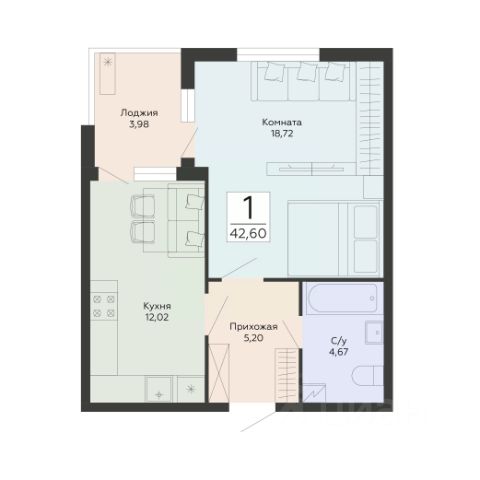 Продаётся 1-комнатная квартира в строящемся доме (1 этап), срок сдачи: IV-кв. 2029, общей площадью 42.6 кв.м., на 9 этаже. Новый жилой комплекс от группы компаний "Развитие" расположен по адресу: г. Воронеж, по ул. Туполева.