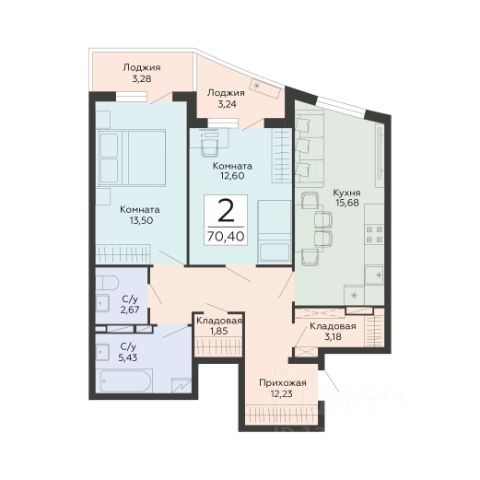 Продаётся 2-комнатная квартира в строящемся доме (1 этап), срок сдачи: IV-кв. 2029, общей площадью 70.4 кв.м., на 9 этаже. Новый жилой комплекс от группы компаний "Развитие" расположен по адресу: г. Воронеж, по ул. Туполева.