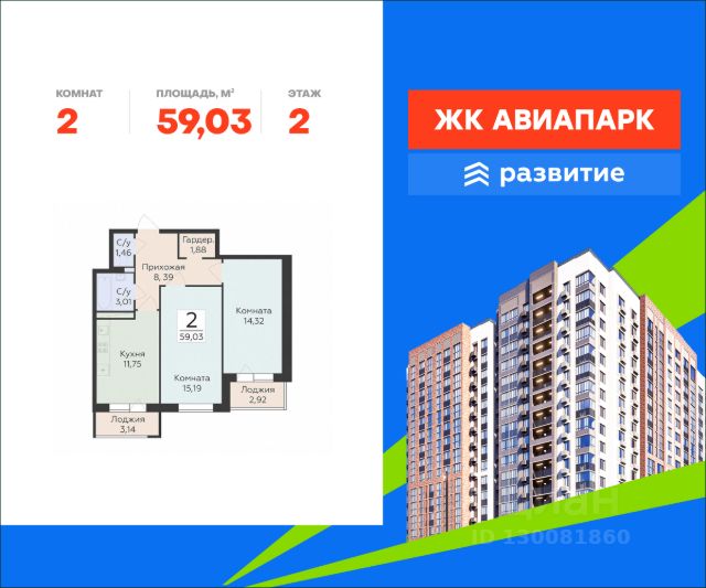 В продаже квартира площадью 59.03 кв. м с черновой отделкой. Квартира расположена на 2 этаже 10 этажного дома, в новом жилом квартале "Авиапарк". Идеальное сочетание природности и городского комфорта теперь по доступной цене! Новый жилой комплекс "Авиапарк" собрал в себе все преимущества современного жилья комфорт-класса, сочетая умиротворение загородной жизни с удобствами городской среды. Расположенный в уютном районе Воронежа с видом на местное водохранилище, комплекс имеет отличную транспортную доступность, современную архитектуру, все необходимые повседневные сервисы и большое благоустроенное пространство для жителей. "Авиапарк" - жизнь в ярком окружении! Расположение Пешком: - 10 мин. до остановки "МЧС"; - 15 мин. до Шиловского леса; - 20 мин. до поликлиники и школы. На автомобиле: - 2 мин. до трассы на Острогожской улице; - 15 мин. до Ленинского района; - 20 мин. до Петровской набережной; - 25 мин. до лесопарков "Вдохновение" и "Оптимистов". Благоустройство - уютные дворы, разделенные на зоны; - прогулочный бульвар в окружении зелени; - большое игровое пространство; - фото-зона; - городок для малышей; - спортивные конструкции для активного отдыха подростков; - беговые и велосипедные дорожки; - фитнес-зона с тренажерами; - паркинг на прилегающей территории; - несколько входных групп с авторским дизайном интерьера; - места для хранения колясок и велосипедов; - легкий доступ к инфраструктуре: магазины, кафе, салоны красоты на первых этажах домов. Окружение - леса и парки: Шиловский, Долгий и Малышевский леса, парк "Семейный"; - живописные водоемы: Шиловское озеро, река Дон, Воронежское водохранилище, Жировский затон; - 3 пляжа, зоопарк под открытым небом, торговые центры "Ласточкино", "Альянс"; - 4 спортивных учреждения, футбольный стадион, школы, детские сады, сетевые супермаркеты. Купить 2-комнатную квартиру в ипотеку в районе Советский в городе Воронеж.