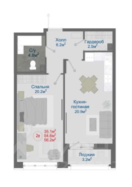 Современная квартира с просторной кухней-гостинной. Просторная кухня-гостиная, Удобная планировка, Прихожая с отдельной гардеробной комнатой, Санузел удобной прямоугольной формы, Выход на большого размера лоджию из кухни Квартира спроектирована с учётом современного стиля жизни и тенденций. Просторная кухня-гостиная позволит с комфортом принимать гостей и весело проводить время. Выход на большого размера лоджию из кухни. Прихожая с отдельной гардеробной, которая поможет избавиться от лишних шкафов, а санузел удобной прямоугольной формы дает возможность комфортного зонирования. Удобная средних размеров спальня., ПСК 4.6%19.9%. -------------------------------------------- Выгодные варианты покупки от Застройщика: 1. Семейная ипотека 4,6% на весь срок кредитования (без удорожания). 2. ИТ ипотека 4,6% на весь срок кредитования (без удорожания) 3. Рассрочка 0% (до сдачи дома) 4. Базовая ипотека для всех от 13,4% (до сдачи дома) -------------------------------------------- Микрорайон комфорт-класса с полной инфраструктурой открывает "южные ворота" города, формируя новый образ. "Матрешка", оправдывая своё название, спроектирована по принципу "город в городе" — все необходимые и привычные удобства — развлекательные, спортивные, образовательные центры находятся в пешей доступности. Микрорайон расположен вблизи кольцевой развязки рядом с Леруа Мерлен в Отрадном, что позволяет быстро добираться до основных точек города, а в центр — за 20 минут Школа на 825 мест Детский сад на 450 мест Площадки для выгула собак Внутренний двор без машин Бесплатный спортзал в каждом доме Игровые комнаты для детей и взрослых Заправки для электромобилей Велодорожки Территория микрорайона Разнообразные планировки и отделка Квартиры с террасами На территории микрорайона располагается большой многофункциональный спортивно-развлекательный комплекс площадью 50 тыс кв.м., оснащённый новейшим оборудованием и спортивными залами для тренировок, фитнеса, спорта и активного отдыха. Также вы можете остановиться в гостинице со SPA-зоной
