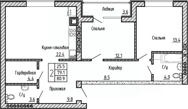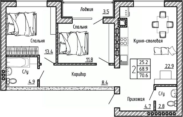 Жилая площадь составляет 25 кв. м. и состоит из двух отдельных спален, просторная кухня-гостиная 24,4 кв. м. позволит вам проводить приятные вечера в кругу семьи или с друзьями. Большой холл со встроенным шкафом-купе, вместит все необходимое. Совмещенный и просторный санузел отделан кафелем, в нём всё продумано до мелочей.