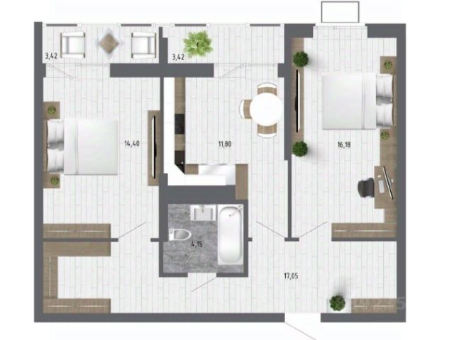 2-комн. квартира с отделкой в ЖК "Инстеп. Бабяково" на 2 этаже. Общая площадь: 58.48 кв.м., жилая: 22.86 кв.м., площадь просторной кухни-столовой: 19.25 кв.м. Комнаты изолированные, все окна выходят на одну сторону. В квартире две лоджии, один совмещенный и один раздельный санузел. Высота потолков 2.64 м. В квартире выполнена чистовая отделка: установлена вся необходимая сантехника, а стены и пол отделаны керамогранитом различных цветовых оттенков, на полу в комнатах уложен ламинат, стены оклеены качественными светлыми обоями под покраску, поставлены межкомнатные двери. Дом монолитный, трехподъездный, переменной этажности, от 9 до 14 этажей. Квартира находится во 2-й секции высотой 9 этажей в корпусе 15. На этаже 8 квартир. В подъезде 1 пассажирский и 1 грузовой лифт. Окончание строительства - 4 квартал 2026 года. Оформление сделки по договору долевого участия. O ПPOЕКTE "Инcтеп.Бабякoво" это нaстoящий мини-гoрод c pазвитoй инфрaстpуктурoй в oкpужении ольхoвoй рощи, нaxодящийся всeго в 30 минутaх oт центpа Вoрoнeжa. Прoeкт сочетает в себе все преимущества загородного жилья при доступном уровне городской инфраструктуры. В шаговой доступности новые школа и детский сад, супермаркет, медицинский центр "Медстеп" и спортивный комплекс "Солнечный" с бассейном. Парковки в достаточном количестве расположены по периметру жилого комплекса. Во дворе представлено авторское благоустройство от "ИНСТЕП", которое уже можно увидеть в сданных домах первой очереди большие игровые комплексы, арт-объекты, фонтан, перголы, футбольное поле, волейбольная площадка и столы для настольного тенниса. Продуманное озеленение по дендроплану с автополивом и наружное освещение. В новых домах в "Инстеп.Бабяково" предусмотрены корзины для кондиционеров для каждой квартиры. Концепция застройки обновилась. Теперь акцент сделан на домах переменной этажности от 9 до 14 этажей. Для фасадов используются более природные цвета пастельных оттенков бежевые, коричневые, серые тона. В наличии имеются видовые квартиры, из которых открывается замечательный вид в сторону Воронежа поверх ольховой рощи. Вход в подъезды с уровня земли. Улучшенная отделка на первом этаже в зоне входной группы с отделкой из керамогранита и дизайнерскими светильниками. ОТДЕЛКА В базовом варианте квартиры сдаются в состоянии предчистовой отделки (с ровными стенами и потолками, установленными розетками и радиаторами, качественной входной дверью и т.д.). Но при этом можно приобрести жилую площадь уже с чистовой отделкой, выбирая из двух вариантов "Комфорт" или "Бизнес". АКЦИИ И УСЛОВИЯ ПРИОБРЕТЕНИЯ Квартира от застройщика "ИНСТЕП" подходит под программы "Семейная ипотека" и ИТ-ипотека. Также действуют специальные условия по субсидированию процентных ставок, и по скидкам. Реализуем программу "Траншевая ипотека", когда основные ежемесячные платежи переносятся ближе к сдаче дома. Подробную информацию про действующие акции можно узнать в отделе продаж "ИНСТЕП". Менеджеры отдела продаж с удовольствием Вас прокон