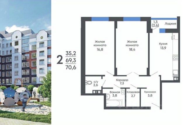 | 🔷 Средняя цена за м2: | 105 тыс. руб./м² |