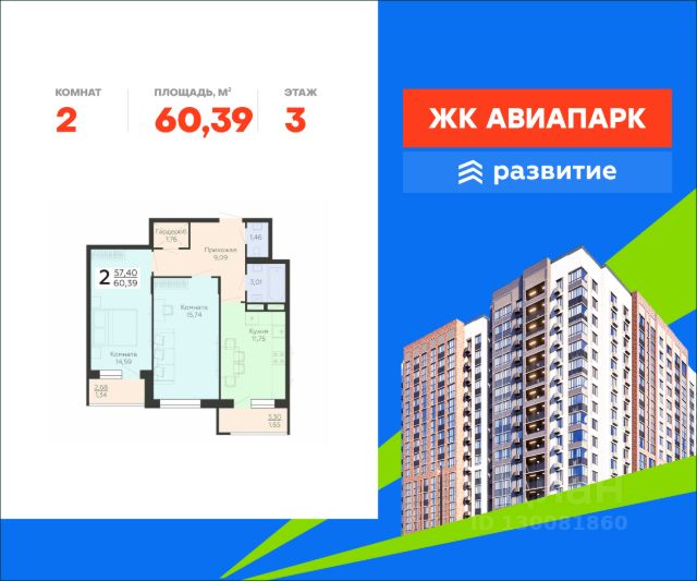 В продаже квартира площадью 47.57 кв. м с черновой отделкой. Квартира расположена на 15 этаже 18 этажного дома, в новом жилом квартале "Авиапарк". Идеальное сочетание природности и городского комфорта теперь по доступной цене! Новый жилой комплекс "Авиапарк" собрал в себе все преимущества современного жилья комфорт-класса, сочетая умиротворение загородной жизни с удобствами городской среды. Расположенный в уютном районе Воронежа с видом на местное водохранилище, комплекс имеет отличную транспортную доступность, современную архитектуру, все необходимые повседневные сервисы и большое благоустроенное пространство для жителей. "Авиапарк" - жизнь в ярком окружении! Расположение Пешком: - 10 мин. до остановки "МЧС"; - 15 мин. до Шиловского леса; - 20 мин. до поликлиники и школы. На автомобиле: - 2 мин. до трассы на Острогожской улице; - 15 мин. до Ленинского района; - 20 мин. до Петровской набережной; - 25 мин. до лесопарков "Вдохновение" и "Оптимистов". Благоустройство - уютные дворы, разделенные на зоны; - прогулочный бульвар в окружении зелени; - большое игровое пространство; - фото-зона; - городок для малышей; - спортивные конструкции для активного отдыха подростков; - беговые и велосипедные дорожки; - фитнес-зона с тренажерами; - паркинг на прилегающей территории; - несколько входных групп с авторским дизайном интерьера; - места для хранения колясок и велосипедов; - легкий доступ к инфраструктуре: магазины, кафе, салоны красоты на первых этажах домов. Окружение - леса и парки: Шиловский, Долгий и Малышевский леса, парк "Семейный"; - живописные водоемы: Шиловское озеро, река Дон, Воронежское водохранилище, Жировский затон; - 3 пляжа, зоопарк под открытым небом, торговые центры "Ласточкино", "Альянс"; - 4 спортивных учреждения, футбольный стадион, школы, детские сады, сетевые супермаркеты. 2-комнатная квартира в ипотеку в новостройке в районе Советский в городе Воронеж.