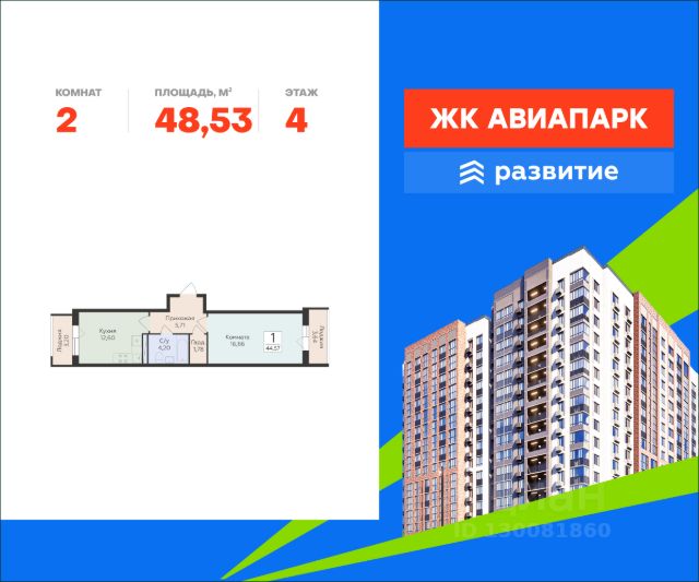 Цена ниже застройщика на 20%!!! ЖК "Авиапарк", Шилово.