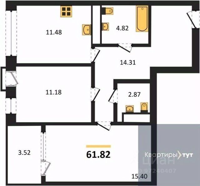 Квартира: 2 к 61,82 кв.м., 18 этаж в комплексе Z-town, 1 очередь, корп.1, сдача: 2кв. , этажей: 21, адрес Воронеж г., Чуева наб., д. 7, Застройщик: Новый код.