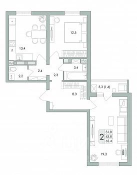 Продаётся 2-комнатная квартира в строящемся доме (Позиция 49), срок сдачи: IV-кв. 2025, общей площадью 65.4 кв.м., на 15 этаже. Расположение, транспортная доступность