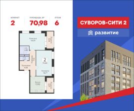 В жилом комплексе, расположенном в 4 километрах от исторического центра Воронежа, продается 2-комнатная квартира площадью 50.92 кв. м с черновой отделкой. Квартира расположена на 6 этаже корпуса 10908586 (ЖК "Суворов Сити 2" (1-й этап, ПОЗИ жилого комплекса комфорт-класса "Суворов Сити II" от федерального застройщика ГК "Развитие". Жилой комплекс "Суворов Сити II" - продолжение современного масштабного проекта "Суворов Сити", находящегося в спальном районе в четырех километрах от центра города. Проект сочетает удачное расположение с удобными планировками, актуальным дизайном и приватным двором. Расположение Пешком: - 5-10 минут - Автобусные остановки; - 12 минут - Школа 50; - 15 минут - Детский сад 174; - 20 минут - ТРЦ "Армада". На автомобиле: - 1 минута - улица Матросова; - 5 минут - улица Ворошилова, проспект Патриотов; - 10 минут - Вогрэсовский мост; - 15 минут - проспект Революции, Чернавский мост, вокзал "Воронеж-1"; - 30 минут - выезд на М-4; - 50 минут - аэропорт "Воронеж". Лобби - Колясочная; - Лапомойка для питомцев; - Входные группы с окнами в пол; - Лифты с возможностью спуска в подземный паркинг на 465 машиномест. Благоустройство - Двор закрыт от прохожих и транспорта; - Доступ на внутреннюю территорию, в парадные и в паркинг по ключам; - Круглосуточное видеонаблюдение; - Собственная инфраструктура (важные магазины и сервисы) на первом этаже здания; - Детский сад во дворе ЖК; - Пешеходная аллея; - Места для отдыха со скамейками и перголами; - Детские игровые и спортивные площадки; - Навигационная подсветка в темное время суток. Окружение - Спокойный спальный район; - Близко магазины, кафе, медклиник, салонов красоты, аптек; - В шаговой доступности - скверы, сады, ТРЦ, стадион. О застройщике Федеральный застройщик ГК "Развитие" лидирует по количеству возводимых объектов и входит в ТОП-20 девелоперов России. За 10 лет на рынке компания ввела в эксплуатацию свыше 700 тыс. кв. м жилья, еще столько же находится в стадии строительства. В портфеле - 30 завершенных проектов и более десятка тысяч заселенных квартир. Девелопер сотрудничает с ведущими отраслевыми партнерами, включая "Северсталь" и "Технониколь". "Развитие" специализируется на строительстве жилых комплексов и микрорайонов, развитии инфраструктуры и создании комфортной городской среды. Девелопер реализует проекты в Воронеже, Москве и области, Ленинградской области, Крыму, Орле и Самаре. Основные форматы - ЖК комфорт- и бизнес-класса, апарт-отели, прибрежные премиальные комплексы и жилые кластеры с коммерцией, парковками и благоустроенными дворами. Купить 2-комнатную квартиру первичка в районе Ленинский в городе Воронеж.