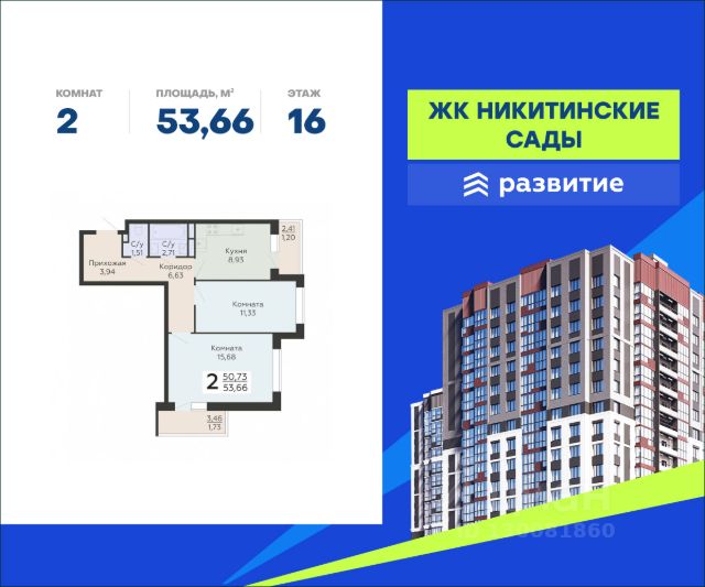 В продаже квартира площадью 54.72 кв. м с отделкой. Квартира расположена на 1 этаже 20 этажного дома, в жилом комплексе комфорт-класса "Никитинские сады". "Никитинские сады" - это новое пространство, которое объединяет в себе современный внешний вид и атмосферу природного уюта. Жилой комплекс включает в себя 4 20-этажных корпуса, 1090 квартир различных планировок, множество общественных пространств для отдыха и собственную инфраструктуру. Наслаждайтесь всеми преимуществами города в окружении живописной природы! Расположение - 10 мин. пешком до остановки "улица Маршала Голикова"; - 5 мин. до бульвара Победы; - 9 мин. до ТРЦ "Арена"; - 20 мин. до ж/д станции "Березовая роща"; - 25 мин. до центра города; Благоустройство - несколько садов во дворе; - озеленение территории; - развивающие комплексы для малышей; - зоны для фотосессий; - скамьи по всему периметру; - прогулочные дорожки; - уличные тренажеры; - турники для воркаута; - мягкое покрытие на активных площадках; - оборудование из натуральных материалов; - освещение территории в вечерние часы; - просторный наземный паркинг; - кафе, магазины и бытовые сервисы на первых этажах. Окружение - природный отдых: Северный лес и лесопарк, пляж у реки Дон, озера Северск, Бычок, Круглое; - активный отдых: спорткомплекс "Арена Север", "Олимпик", футбольная школа и стадион, бассейн "Атлант", теннисный клуб "Спарта"; - культурный отдых: Музей почтового дела, КДЦ "Северный", храм Ксении Петербургской; - городской отдых: ТРЦ Сити-парк "Град" и "Московский проспект", ТРЦ "Арена", множество магазинов, кафе и студий красоты.