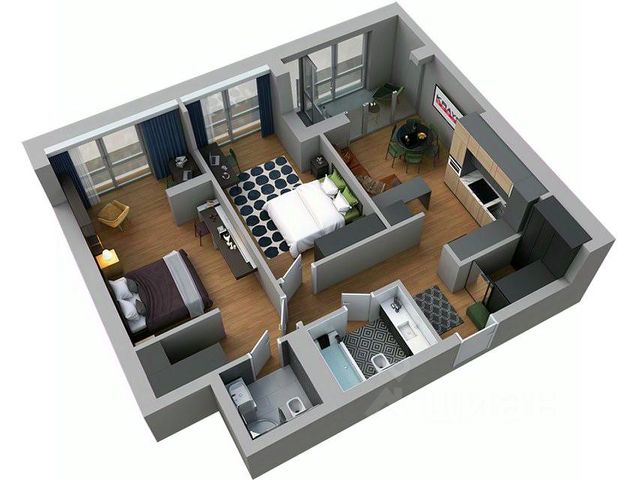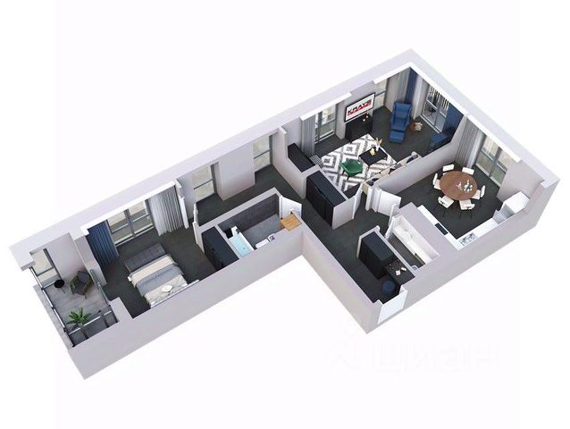 Эта квартира в полной мере отражает современный формат смарт-планировки. Габариты каждого помещения выверены до сантиметра для максимально логичной расстановки мебели.
