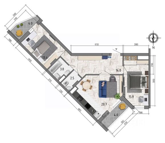 3 к евро, Две лоджии, Спальни на разные стороны, Большая кухня-гостиная, Светлая квартира, Вид на реку Стильная 3-комнатная квартира евро формата. Здесь предусмотрены две просторные жилые комнаты и кухня- гостиная. Благодаря увеличенным окнам и современному остеклению лоджий в квартире получилась большая и светлая обеденная зона. Из окон спальни открывается живописный вид на реку. Микрорайон Боровое крупный жилой массив, расположенный в экологически благоприятном северо-восточном районе города Воронежа. Жилой комплекс располагает собственной инфраструктурой и сервисами и расположен в особенном, живописном месте у реки по соседству с пляжем и сосновым лесом. Микрорайон Боровое несомненно понравится тем, кто выбирает для себя и своей семьи комфорт современного города. В жилом комплексе находятся три детских сада, офис врачей общей практики, развивающие центры для детей, в шаговой доступности расположена новая школа. На территории ЖК открыт новый ТРЦ площадью 25 000 кв.м. включающий в себя более 40 магазинов и кафе. Особенности проекта: Транспортная доступность / Развитая инфраструктура / Школа и детские сады / Спортивные площадки для активных видов отдыха / Панорамные виды из окон и живописные пейзажи / Городской пляж и лес рядом с ЖК / Квартиры с классической планировкой и квартиры евроформата / Качественная предчистовая отделка / Три концепции 100 % отделки квартир. Расположение ЖК: Железнодорожный район г. Воронежа. Примерное время в пути до центра города: Авто: 20 минут до проспекта Революции, Ж/д: 21 минута до Площади генерала Черняховского. Инфраструктура микрорайона Боровое: Для детей: Средняя общеобразовательная школа 64, 3 детских сада (Детский сад 177, Детский сад общеразвивающего вида 28, Детский сад 69), 5 детских развивающих центров, студия творчества. Здоровье: Амбулатория 4, Здоровый ребенок Доктор Мишка, филиал Боровое, Invitro, диагностический центр, медицинская лаборатория, Эверест, ветеринарная клиника Новая Эра, медицинский центр, Твоя улыбка, стоматологическая клиника. Спорт: Ferrum фитнес, фитнес-клуб; СК Самбо-36, спортивный клуб; секция Найсстретчинг, спортивный клуб; Indance -танцевально-спортивная школа; Dojo -клуб карате; открытая хоккейная площадка. 14 салонов красоты. Магазины: Пятёрочка, Красное&белое, Магнит, Магнит косметик, Семь дней, Лидер (строительный магазин), Flores, магазин цветов, Рыболовный магазин, Боровое торговый центр, включающий в себя магазины одежды, супермаркет, магазины бытовой техники, аптеку, оптику, кофейню и многое другое. Пункты выдачи: Wildberries, Яндекс Маркет, Ozon. Прочее: МФЦ "Мои документы"; автошкола; Мастерская домашнего текстиля. Условия покупки: Действует льготная ипотека. Помощь в получении одобрения от банков. Цена указана при сделках с единовременной оплатой или с использованием кредитных средств банка (без субсидирования ставки). Подробную информацию можно получить по телефону и в офисе продаж по адресу: город Воронеж, ул.Сельская,д.2/2. г.Во Продам 2-комнатную квартиру в микрорайоне Боровое в городе Воронеж.