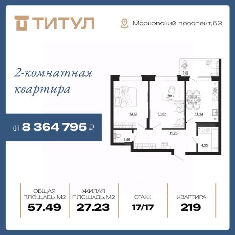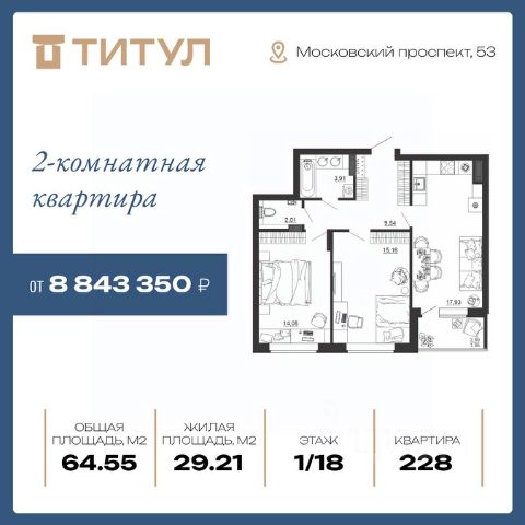 ЖК "ТИТУЛ" — ИНВЕСТИЦИИ В КОМФОРТНУЮ ЖИЗНЬ Жилой комплекс комфорт-класса "Титул" строится в развитой части Коминтерновского района, на ключевой магистрали Воронежа — Московском проспекте. В проекте предусмотрено два дома с переменной этажностью 17, 18, 19 и 25 этажей. В комплексе представлено более 30 видов продуманных эргономичных планировок. Просторные кухни и кухни-столовые для вашей семьи и друзей. Большие прихожие, в которых легко обустроить системы хранения. Спальни и гостиные, спланированные для вашего комфортного отдыха. Уютные детские, где поместятся все необходимые предметы мебели, удобные для сна, игры и учебы. Балконы и лоджии застеклены сразу — вам не придется начинать новую жизнь с ремонта! В комплексе есть студии, однокомнатные, двухкомнатные и трехкомнатные квартиры, а также современные решения планировок евро формата. Острый вопрос места стоянки и сохранности автомобиля решен благодаря удобному подземному паркингу на -1 и -2 этажах. Подземный паркинг Секции 2 рассчитан на 61 машино-места, в том числе семейные парковки на два автомобиля. Больше не придется волноваться за машину и чистить ее по утрам зимой. Выйти в теплый паркинг можно прямо из лифта. Ваши гости тоже не останутся без парковки — организованы специальные гостевые машино-мест на объекте строительства. Планируемое количество гостевых машино-мест - 23, на территории Секции 3 и гостевые места вне придомовой территории - 45. Для абсолютного комфорта на -1 этаже Секции расположено 71 кладовое помещение площадью от 3,23 до 8,29 кв.м., где можно хранить все что угодно — велосипеды, санки, лыжи и прочие вещи. Они больше не будут занимать весь балкон. Там гораздо приятнее пить кофе и любоваться видом из окна. ИНФРАСТРУКТУРА В шаговой доступности от ЖК "Титул" уже есть вся необходимая инфраструктура. А на ключевых маршрутах транспорта легко добраться до вузов и крупных ТЦ, не более чем за полчаса. Рядом с вами: — школы/ детские сады/ магазины/ аптеки/ бассейн/ детская, спортивная площадки и многое другое. Изменения городской инфраструктуры в сторону максимального удобства продолжают происходить! Постановлением Администрации городского округа город Воронеж утверждена документация по планировке территории квартала, ограниченного проспектом Московский, ул. Хользунова, ул. Шишкова, ул. Беговая. В его границах предполагается: реконструкция МБДОУ "Детский сад общеразвивающего вида 102" и реконструкция МБОУ СОШ 47 с увеличением их проектной мощности. Продам 2-комнатную квартиру на проспекте Московский в городе Воронеж.