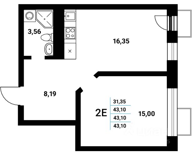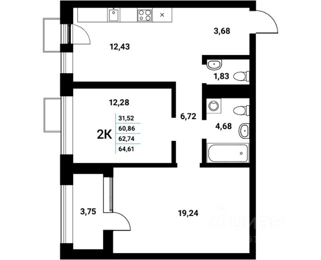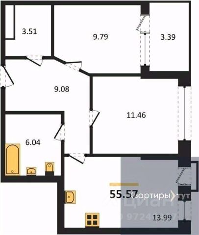 Квартира: 2 к 54,93 кв.м., 3 этаж в комплексе Z-town, 1 очередь, корп.1, сдача: 2кв. , этажей: 21, адрес Воронеж г., Чуева наб., д. 7, Застройщик: Новый код.