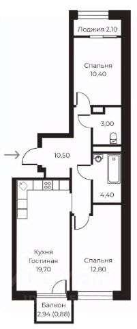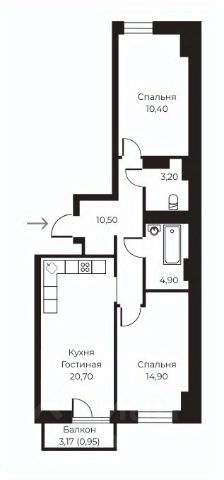 Общая площадь 51,8 кв. м. без учета лоджии, 5/9 этаж.