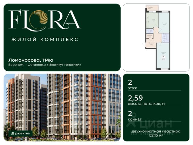 "Городские сады" - жилой комплекс комфорт-класса с новыми традициями своего сегмента. Комплекс реализуется в формате "город-сад", отличается особой рекреационной составляющей и "дружелюбной к экологии" концепцией. ЖК "Городские сады" - современный экологичный квартал, в котором преимущества загородной жизни сочетаются с удобством городского пространства. Проект предполагает интенсивное озеленение территории. Пространство района состоит из нескольких кварталов-садов: рябиновый квартал, еловый квартал, кленовый квартал, дубовый квартал, сиреневый квартал. Тема садов обыгрывается в цвете интерьеров подъездов и оборудования. ЖК "Городские сады" примыкают к особой лесной зоне с природоохранным статусом "Воронежская Нагорная Дубрава", через которую проходит "Зеленая сеть" города Воронеж. Концепцией проекта предусмотрен двор-сад без машин. Для интерьеров подъездов разработан индивидуальный дизайн-проект, установлены качественные высокоскоростные бесшумные и комфортные лифты. В каждом подъезде предусмотрены помещения для хранения колясок и велосипедов. Безопасность помещений обеспечивается видеонаблюдением и ограничением доступа по индивидуальному ключу. Все подъезды в комплексе имеют сквозные входы. Для удобства жителей и гостей комплекса будет реализована безбарьерная среда, продуманная система навигации. У ЖК "Городские сады" есть своя инфраструктура, которая выходят за рамки "формального" благоустройства придомовой территории: площадь для проведения событий с фонтаном, прогулочные аллеи, мини-парк (дубовая роща) с интегрированными в нее зонами для отдыха и спорта, площадки для детей разных возрастов, спортивные тренажеры, воркаут площадка, зоны со столами для настольного тенниса, велодорожки. На первых этажах комплекса будут расположены магазины формата "у дома", аптеки, магазины косметики, парфюмерии, бытовой химии, пункты выдачи товаров интернет-магазинов, предприятия сферы услуг и многое другое, необходимое для ежедневной жизни новоселов. Для осуществления комплексных покупок жильцы могут легко добраться до ближайших торговых центров ТРЦ "Московский проспект", ТЦ "Пять столиц", ТРЦ Сити-парк "Град", расположенных в зоне транспортной доступности. Рядом с ЖК "Городские сады" на территории площадью почти 35 гектар администрацией города запланировано создание полноценного социального узла. По планам администрации объектами социального узла станут: самая большая в России школа на 2860 мест, детская школа искусств с библиотекой, поликлиника на 1100 посещений в смену с подстанцией скорой медицинской помощи, самая большая школа в России и самый большой сад в городе в зоне 5-минутной пешей доступности, многофункциональный спортивный комплекс "Академия". Для удобства жителей комплекса предусмотрен подземный паркинг. Продается 2-комнатная квартира на улице Ломоносова в городе Воронеж.