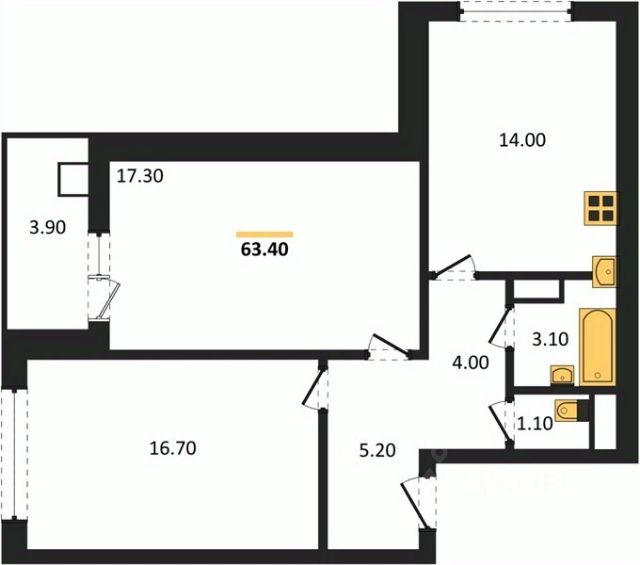 • ✅ Объект наибольшей площади: 63,4 м²