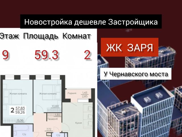 • ✓ В базе Циан 1 2-комнатных квартир возле школы на улице Ленинградская в городе Воронеж
