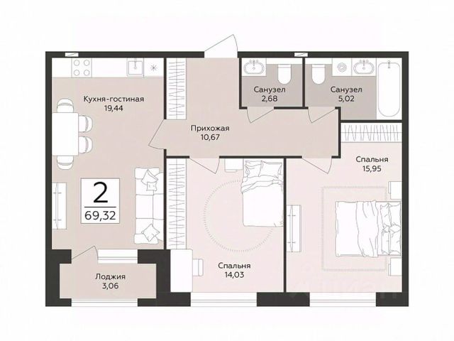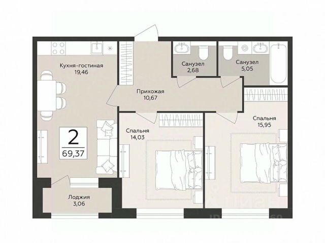 • ✅ Минимальная площадь: 60,8 м²