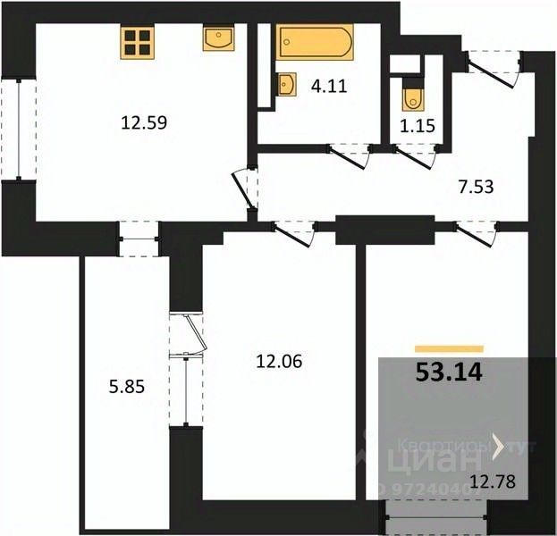 Квартира: 2 к 53,14 кв.м., 3 этаж в комплексе Дом у Ротонды, 1 очередь, корп.1, сдача: 4кв. , этажей: 28, адрес Воронеж г., Транспортная ул., д. 58, Застройщик: ГК ГРАД.