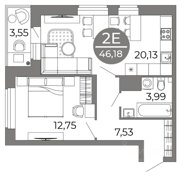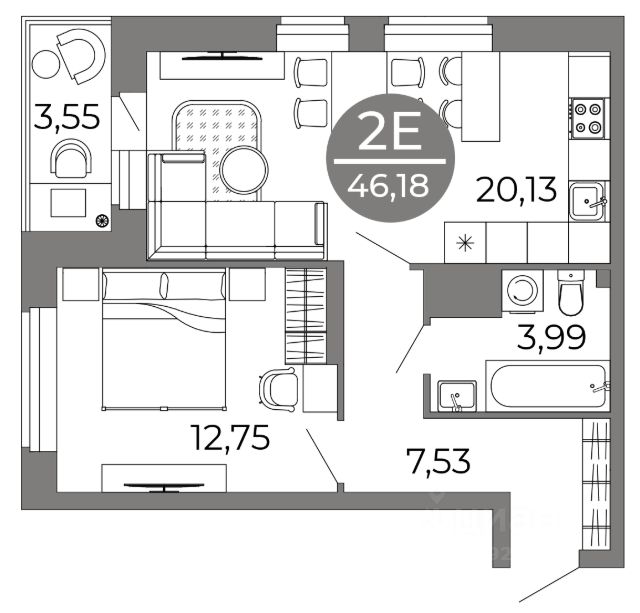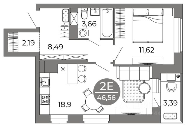Квартира: 2 к 55,40 кв.м., 22 этаж в комплексе Галилей, 1 очередь, корп.2, сдача: 3кв. , этажей: 25, адрес Воронеж г., Кривошеина ул., д. 13/14, Застройщик: ГК Крайс.