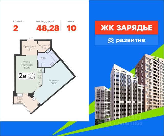 В продаже квартира площадью 48.28 кв. м с черновой отделкой. Квартира расположена на 10 этаже 18 этажного дома, в новом микрорайоне комфорт-класса "Зарядье" (Девелопер - федеральный застройщик ГК "Развитие"). Арт-квартал "Зарядье" - новый центр притяжения Коминтерновского района. Проект состоит из трех зданий переменной этажности, соединенных единым двором-парком, также он оснащен просторным подземным паркингом. Это уникальный квартал, в котором превосходная транспортная доступность, современная инфраструктура, сочетаются безупречные цветовые решения и эксклюзивные форматы квартир. Расположение Пешком: - 5 мин. до остановки "Политехнический институт"; - 7 мин. до Коминтерновского сквера; - 20 мин. до Центрального автовокзала. На автомобиле: - 5 мин. до Московского проспекта; - 10 мин. до центра города; - 15 мин. до Центрального парка; - 20 мин. до набережной у Воронежского водохранилища. Благоустройство - большой двор-парк; - функциональное зонирование территории; - сложный ландшафт, наполненный красками; - площадки для самых маленьких; - игровые комплексы для подростков; - футбольный корт; - протяженный прогулочный бульвар; - зоны отдыха среди деревьев; - беседки и скамейки по всему периметру; - workout-площадка; - дизайнерские лобби; - собственная служба консьержа; - 324 парковочных мест в подземном паркинге и на гостевой стоянке; - магазины, аптеки и кафе на первых этажах. Окружение - 4 уютных сквера: Коминтерновский, Солнечный, Политехнический, Электросигнальный; - спортивный центр BTR, Центральный стадион профсоюзов, фитнес-клуб "Олимп"; - ТРК "Арена", ТРЦ "Московский проспект", больницы, рестораны и учебные заведения Центрального района; - театр драмы имени Кольцова, Воронежский цирк, большой концертный зал, театр оперы и балета - все в пределах 15 минут.