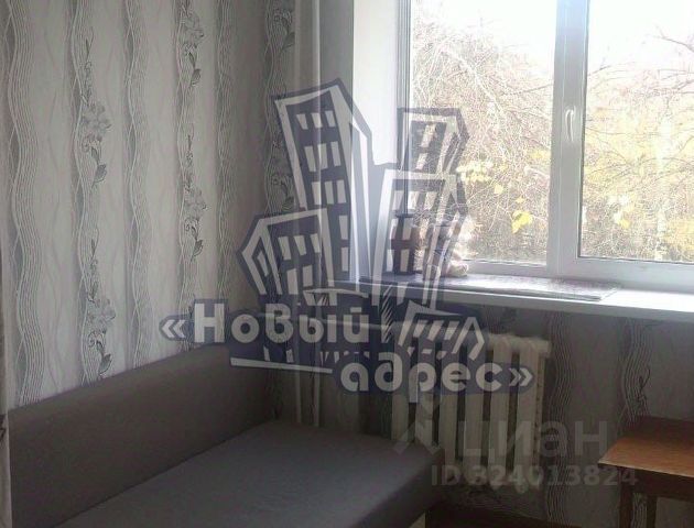 В комнате угловой диван(не раскладывается), Шкаф, стенка, стол с двумя стульями - мебель остаётся в квартире(не новая). Натяжной потолок, большое пластиковое окно, чугунная батарея, на полу ленолиум, входная металическая дверь.