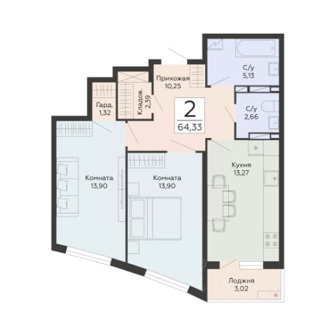 Продаётся 2-комнатная квартира в строящемся доме (1 этап), срок сдачи: IV-кв. 2029, общей площадью 63.76 кв.м., на 2 этаже. Новый жилой комплекс от группы компаний "Развитие" расположен по адресу: г. Воронеж, по ул. Туполева.