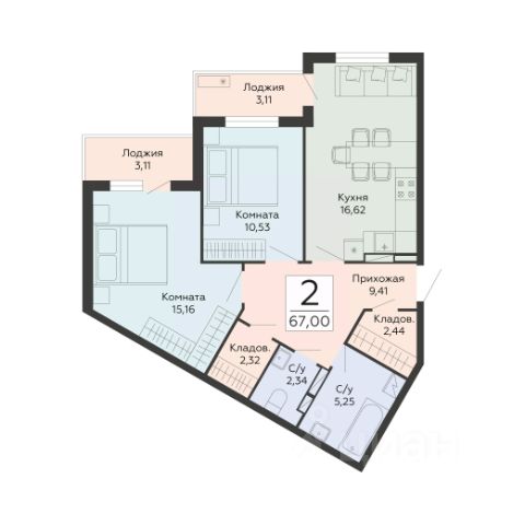 Продаётся 2-комнатная квартира в строящемся доме (1 этап), срок сдачи: IV-кв. 2029, общей площадью 67 кв.м., на 9 этаже. Новый жилой комплекс от группы компаний "Развитие" расположен по адресу: г. Воронеж, по ул. Туполева.