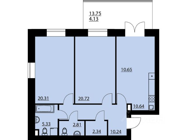 • ✓ В базе Циан 4 3-комнатных квартир без ремонта на улице Кленовая в поселке Солнечный в сельском поселении Яменское