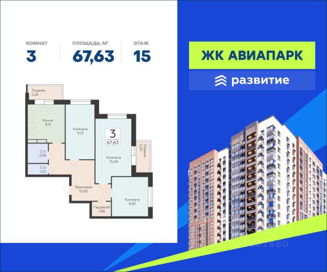 В продаже квартира площадью 67.63 кв. м с черновой отделкой. Квартира расположена на 15 этаже 19 этажного дома, в новом жилом квартале "Авиапарк". Идеальное сочетание природности и городского комфорта теперь по доступной цене! Новый жилой комплекс "Авиапарк" собрал в себе все преимущества современного жилья комфорт-класса, сочетая умиротворение загородной жизни с удобствами городской среды. Расположенный в уютном районе Воронежа с видом на местное водохранилище, комплекс имеет отличную транспортную доступность, современную архитектуру, все необходимые повседневные сервисы и большое благоустроенное пространство для жителей. "Авиапарк" - жизнь в ярком окружении! Расположение Пешком: - 10 мин. до остановки "МЧС"; - 15 мин. до Шиловского леса; - 20 мин. до поликлиники и школы. На автомобиле: - 2 мин. до трассы на Острогожской улице; - 15 мин. до Ленинского района; - 20 мин. до Петровской набережной; - 25 мин. до лесопарков "Вдохновение" и "Оптимистов". Благоустройство - уютные дворы, разделенные на зоны; - прогулочный бульвар в окружении зелени; - большое игровое пространство; - фото-зона; - городок для малышей; - спортивные конструкции для активного отдыха подростков; - беговые и велосипедные дорожки; - фитнес-зона с тренажерами; - паркинг на прилегающей территории; - несколько входных групп с авторским дизайном интерьера; - места для хранения колясок и велосипедов; - легкий доступ к инфраструктуре: магазины, кафе, салоны красоты на первых этажах домов. Окружение - леса и парки: Шиловский, Долгий и Малышевский леса, парк "Семейный"; - живописные водоемы: Шиловское озеро, река Дон, Воронежское водохранилище, Жировский затон; - 3 пляжа, зоопарк под открытым небом, торговые центры "Ласточкино", "Альянс"; - 4 спортивных учреждения, футбольный стадион, школы, детские сады, сетевые супермаркеты.
