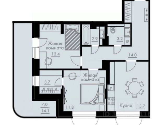 Квартира не угловая, находится в середине дома. В квартире не слышно соседей. Удобная планировка. Просторная прихожая, в квартире три изолированныe комнаты, большая, светлая кухня 13,6 кв.м., между спальнями холл, гардеробная. Санузел раздельный, облицован качественной керамической плиткой.