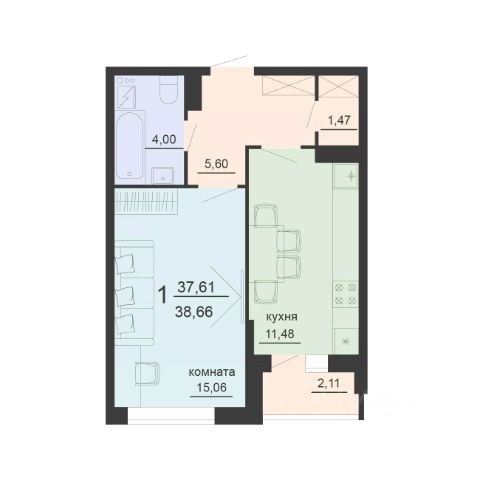 В квартире выполняется качественная предчистовая отделка, возможно приобрести и чистовую отделку. Благоустройство прилегающей территории включает в себя организацию зон отдыха, детский городок и спортивные площадки, автостоянка, а также вишневый сад и комплексное озеленение. В непосредственной близости расположены образовательные учреждение и магазины.