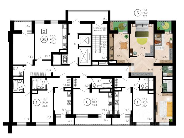 • ✓ В базе Циан 9 3-комнатных квартир на 12 этаже в микрорайоне Северо-Восточный в городе Воронеж
